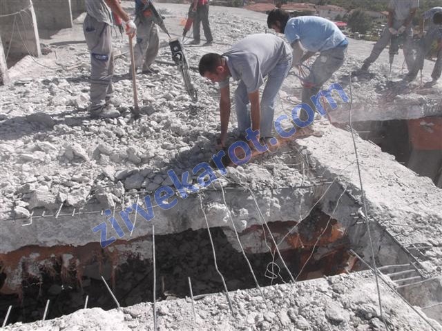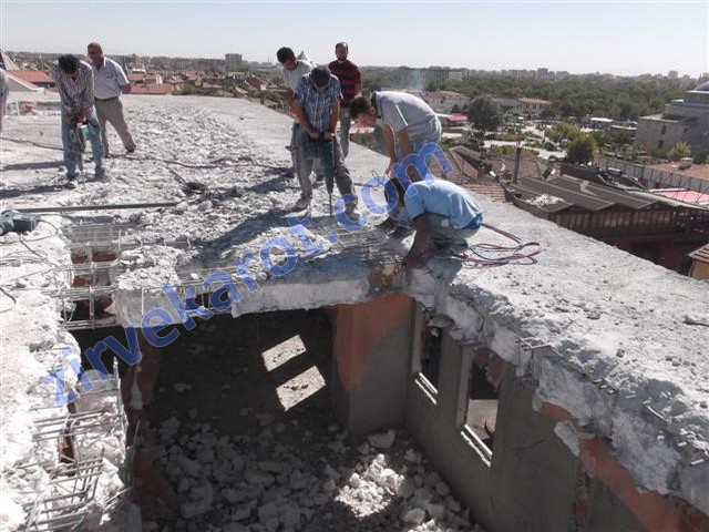 Beton kırma işlemi iş makineleri ve elektrikli el aletleri ile yapılmaktadır.